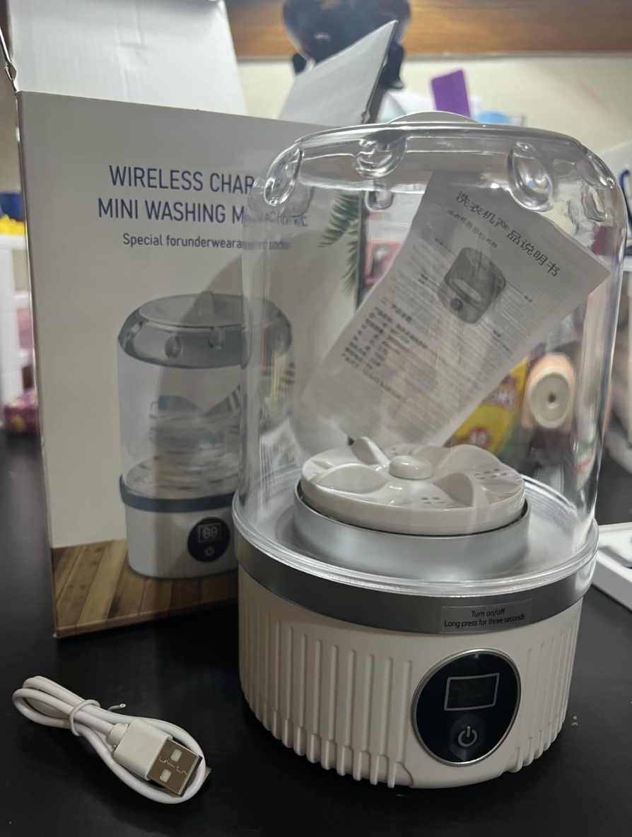 This mini washing machine is very helpful for washing small things like underwear, bras, and socks. It’s small, light, and easy to carry. I like that it is cordless and can be charged. It’s great for travel or daily use at home. It cleans well and saves water. I’m happy with this product!